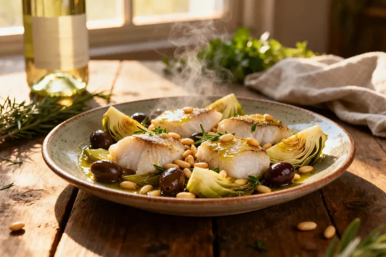 “Pescatrice con carciofi alla ligure, olive taggiasche e pinoli: la ricetta tradizionale”